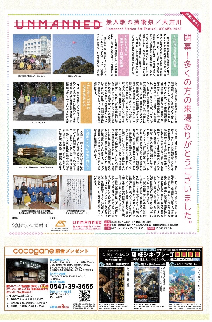 第6回目の無人駅の芸術祭が無事に閉幕しました。大勢のお客様にご来場いただき、また、参加アーティストの皆さん、お手伝いくださったサポーターや地域の方々などなど、感謝の気持ちでいっぱいです。