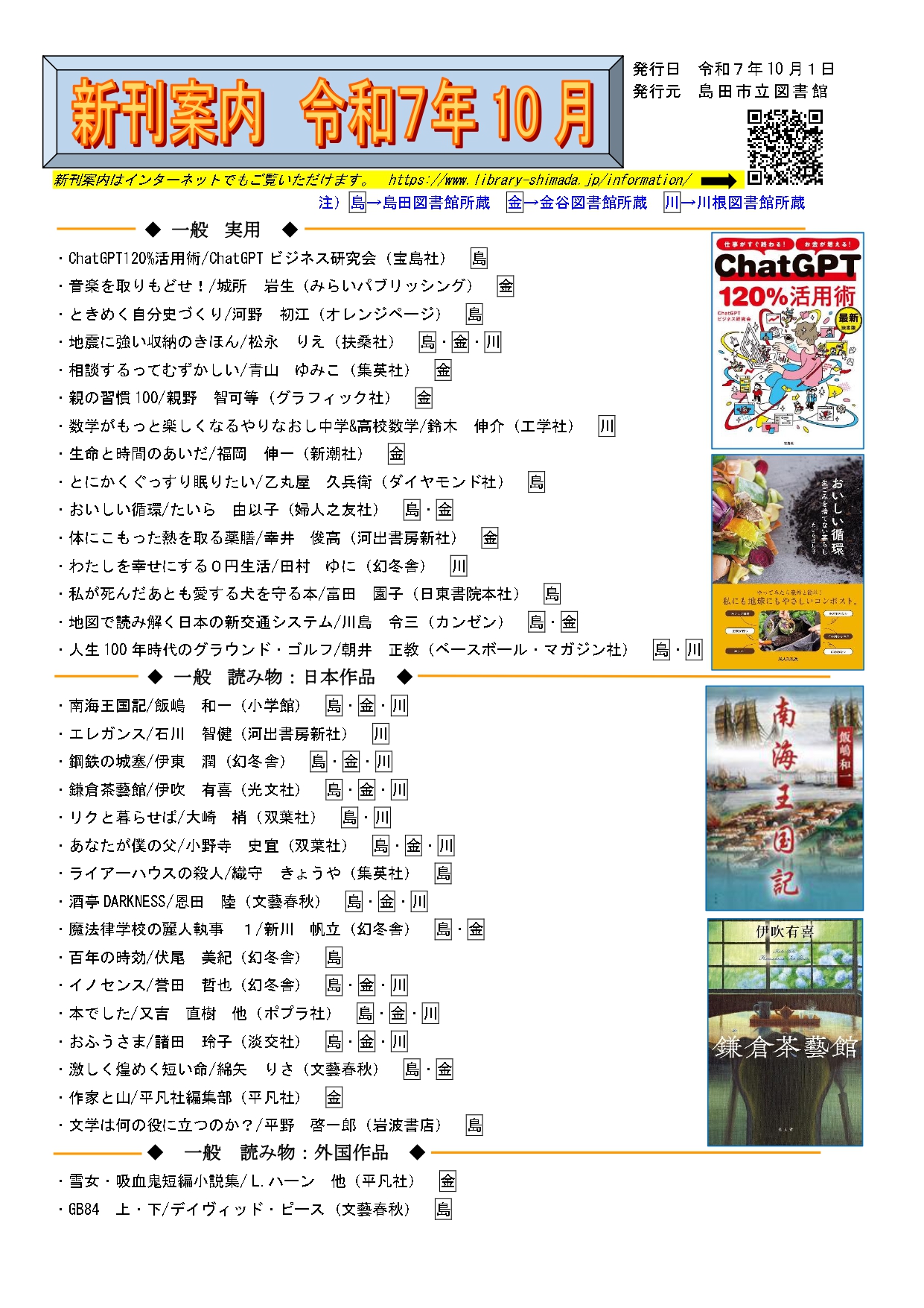 図書館では毎月新刊案内を発行しています。
