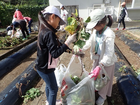 持ち帰るサツマイモは、「焼き芋にする!」「天ぷらがいいな」と、みんな食べるときのことを想像して楽しそうでした。サツマイモは、収穫したすぐよりも、数週間置いた方がおいしくなるので、食べる日が待ち遠しいですが、じっくり熟成させたいですね。