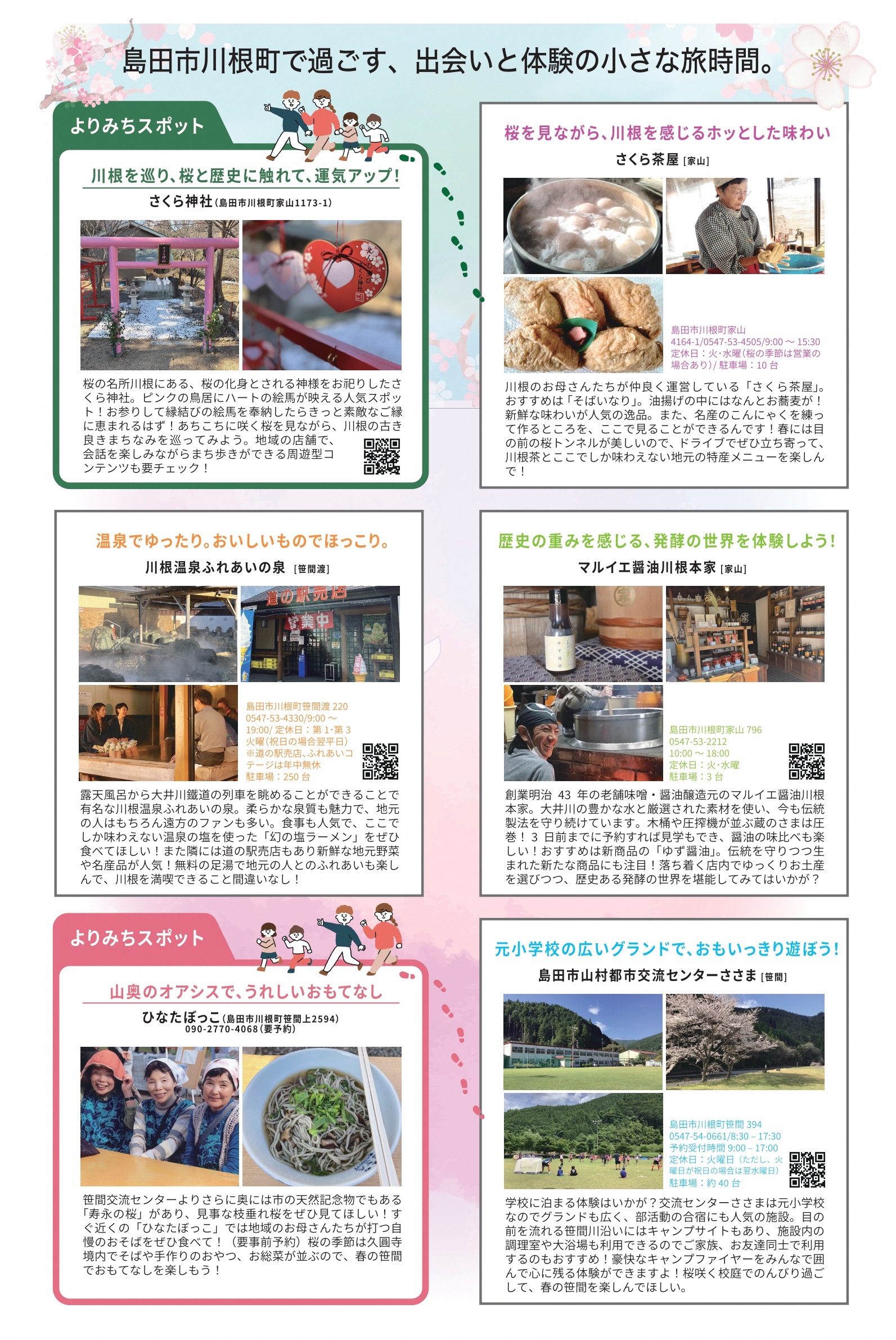 風がやわらぎ、景色が少しずつ明るくなる春。今号は、川根エリアで楽しめる”おでかけ”を集めました。